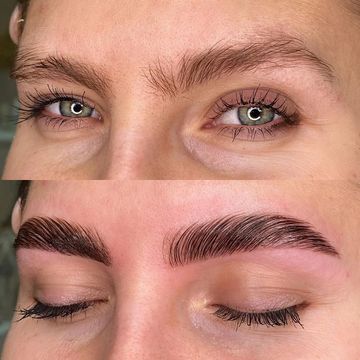 Brow lamination is a revolutionary treatment that tames unruly brows, sets them in a uniform shape, and gives them a fuller, more defined look. This non-invasive procedure involves applying a gentle chemical solution to straighten and lift the brow hairs, creating a polished, well-groomed appearance that lasts for up to 6-8 weeks.